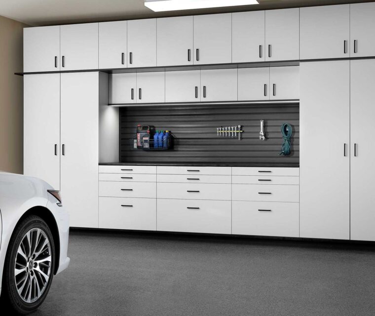 The base panels are available in multiple colors to match your garage design and will not warp or split. For an ultra-clean look, line the entire garage with these sleek panels complete with custom trim around windows and doors. Accessories snap into place but are easy to remove and reconfigure as your needs change allowing you to move your items up and your car in. Our garage storage solutions can help you transform your garage into something that can provide extra space for your family. The garage does not need to be a dirty space only good for storing your vehicles. Proper garage storage solutions and cabinets can help your garage become a safe and clean storage option.
